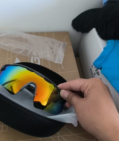 朋友送的不知名品牌运动防护镜,带偏光,防晒功能很赞。全新未用,镜片颜色炫彩,适合骑行、跑步等各种户外活动。