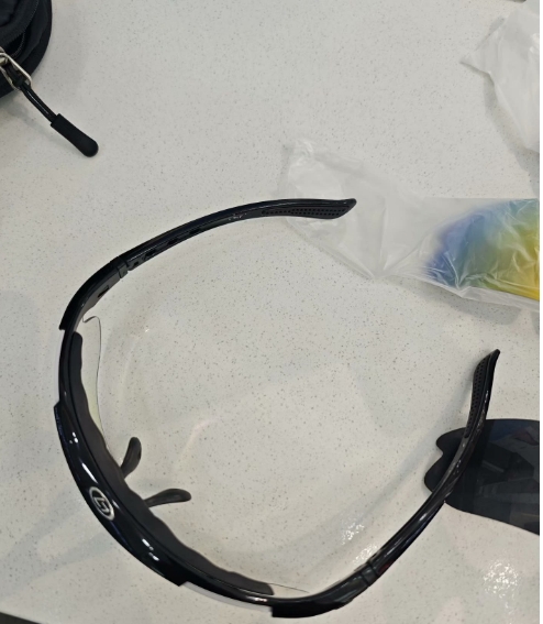 朋友送的不知名品牌运动防护镜,带偏光,防晒功能很赞。全新未用,镜片颜色炫彩,适合骑行、跑步等各种户外活动。