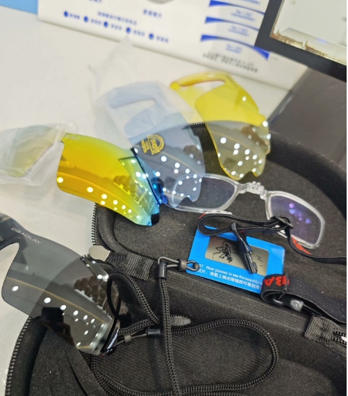 OBAOLAY骑行眼镜,运动眼镜,因为都是晚上用,几乎全新,实体店配的,适合骑行和户外活动。自带五个可换镜片,内镜250-275度,散光,不用配镜也能用。滑雪爬山都没问题,包装袋未拆,滑雪必备。不退不换,偏远地区不包邮,加40 XL码的 只用了3次的Moon骑行头盔一起寄出了